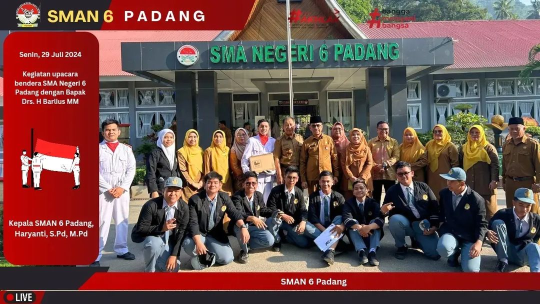 Senin, 29 Juli 2024 - Kegiatan Upacara Bendera di SMAN 6 Padang hari ini berlangsung dengan hikmat. Acara pagi ini dimeriahkan langsung oleh Bapak Drs...