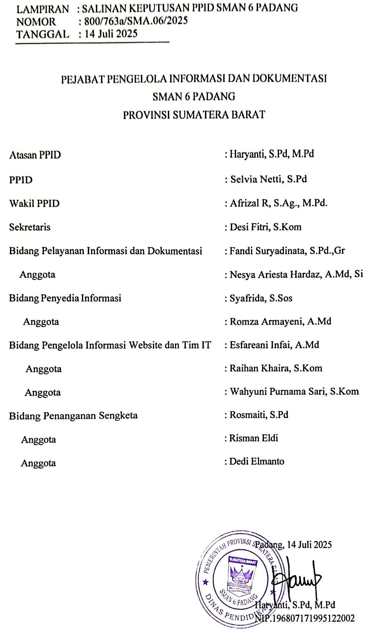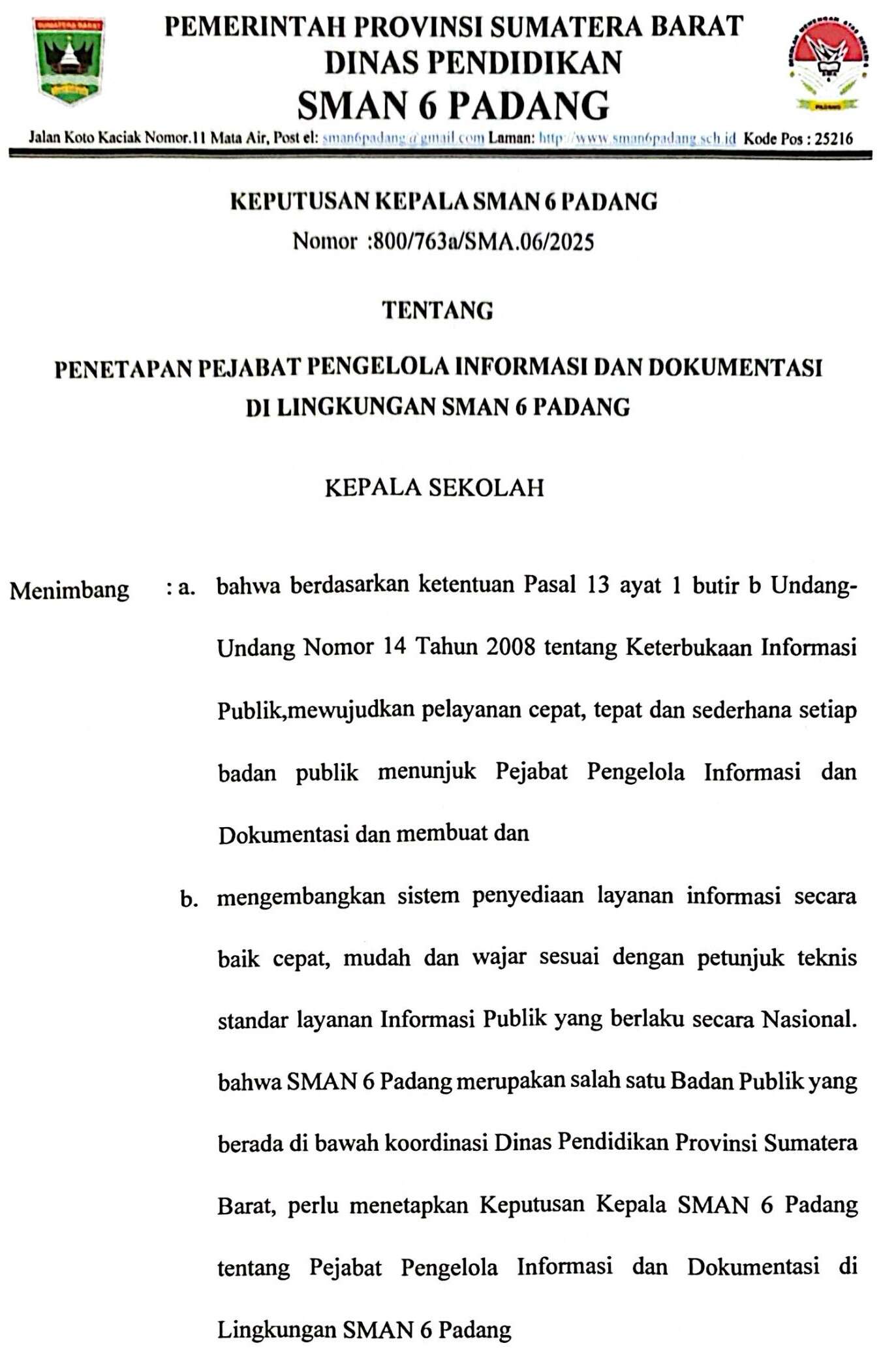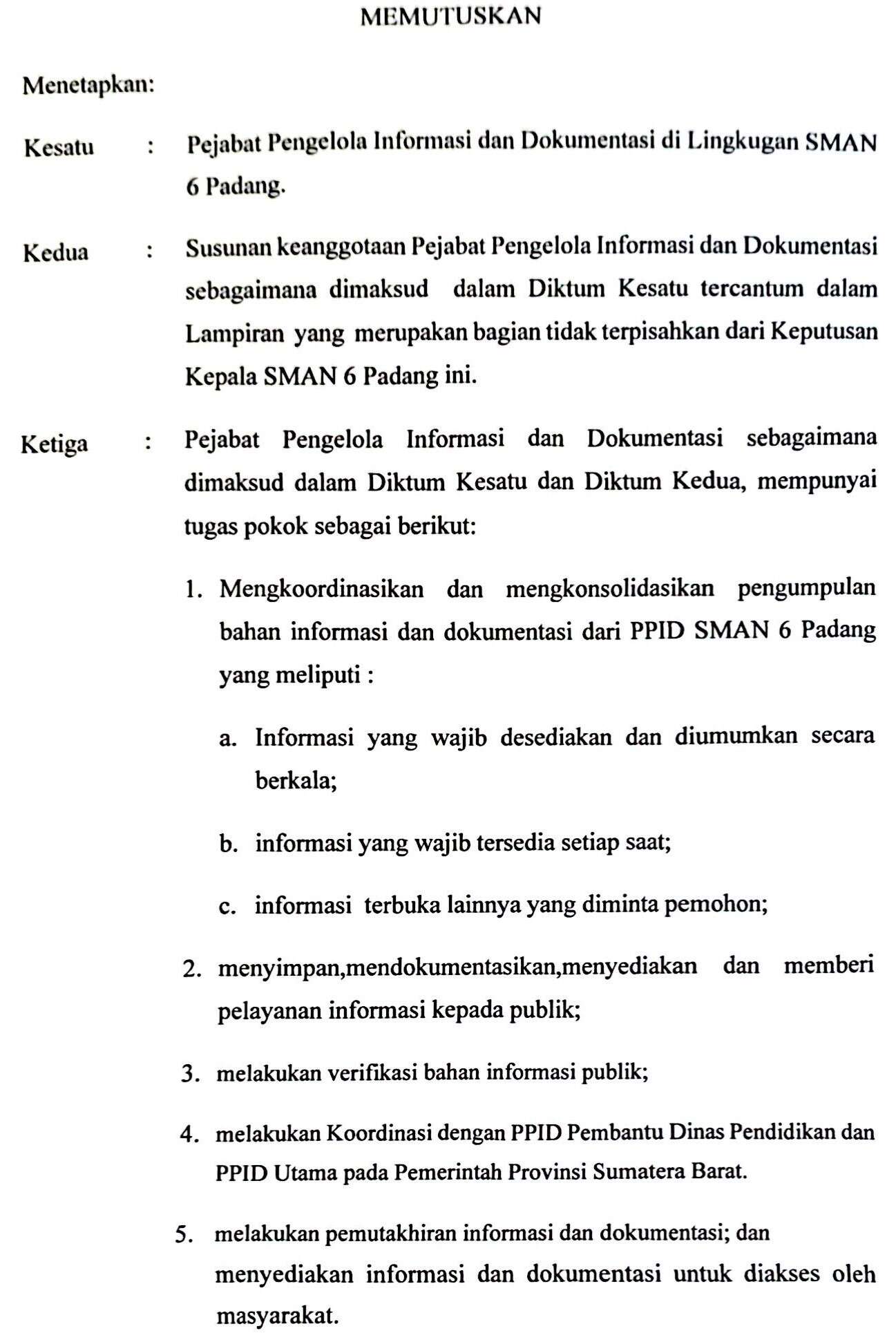 SOP PENDOKUMENTASIAN INFORMASI PUBLIK PPID SMAN 6 PADANG